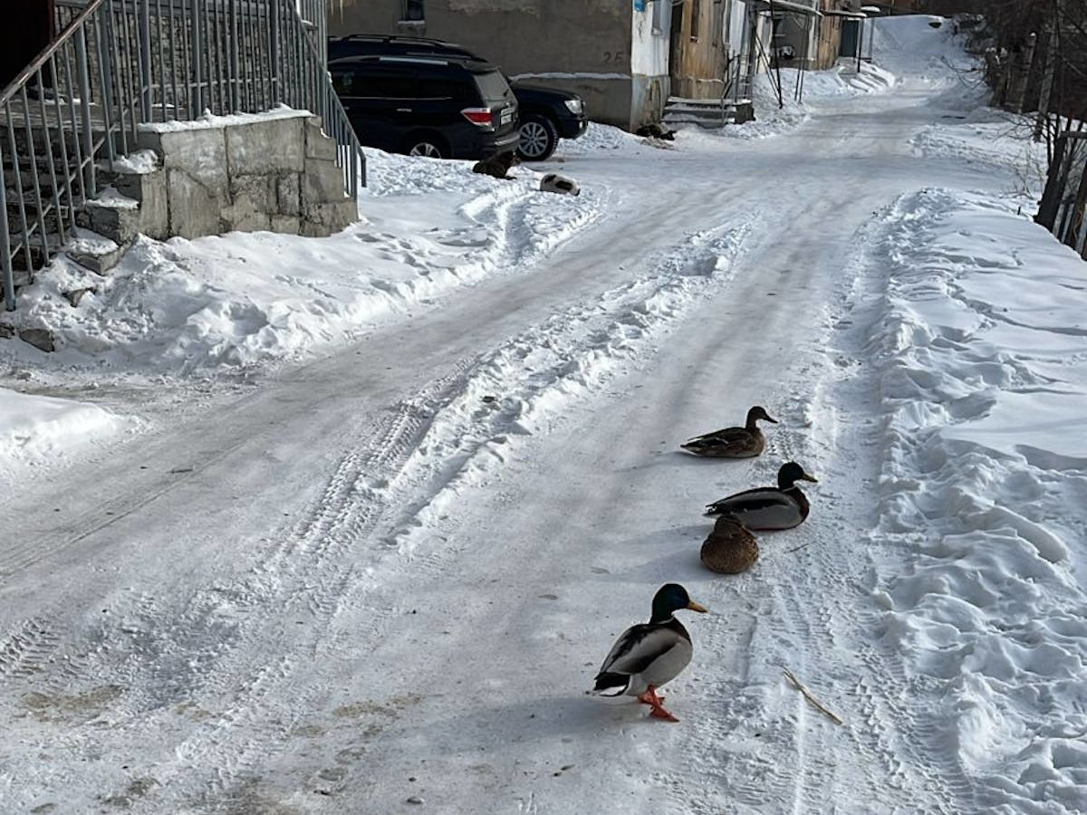 В Усть-Каменогорске утки пожаловали во двор многоэтажки