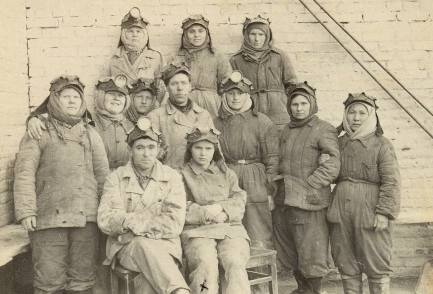 Группа горняков после рабочей смены. 1944 год