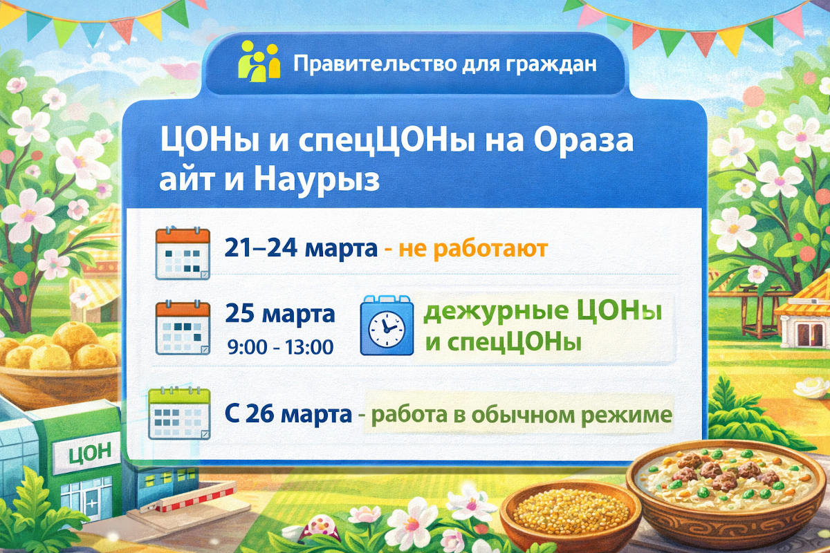 В Казахстане изменится график работы ЦОНов и спецЦОНов в связи с праздниками Ораза айт и Наурыз, передает Noks.kz со ссылкой на госкорпорацию «Правительство для граждан».