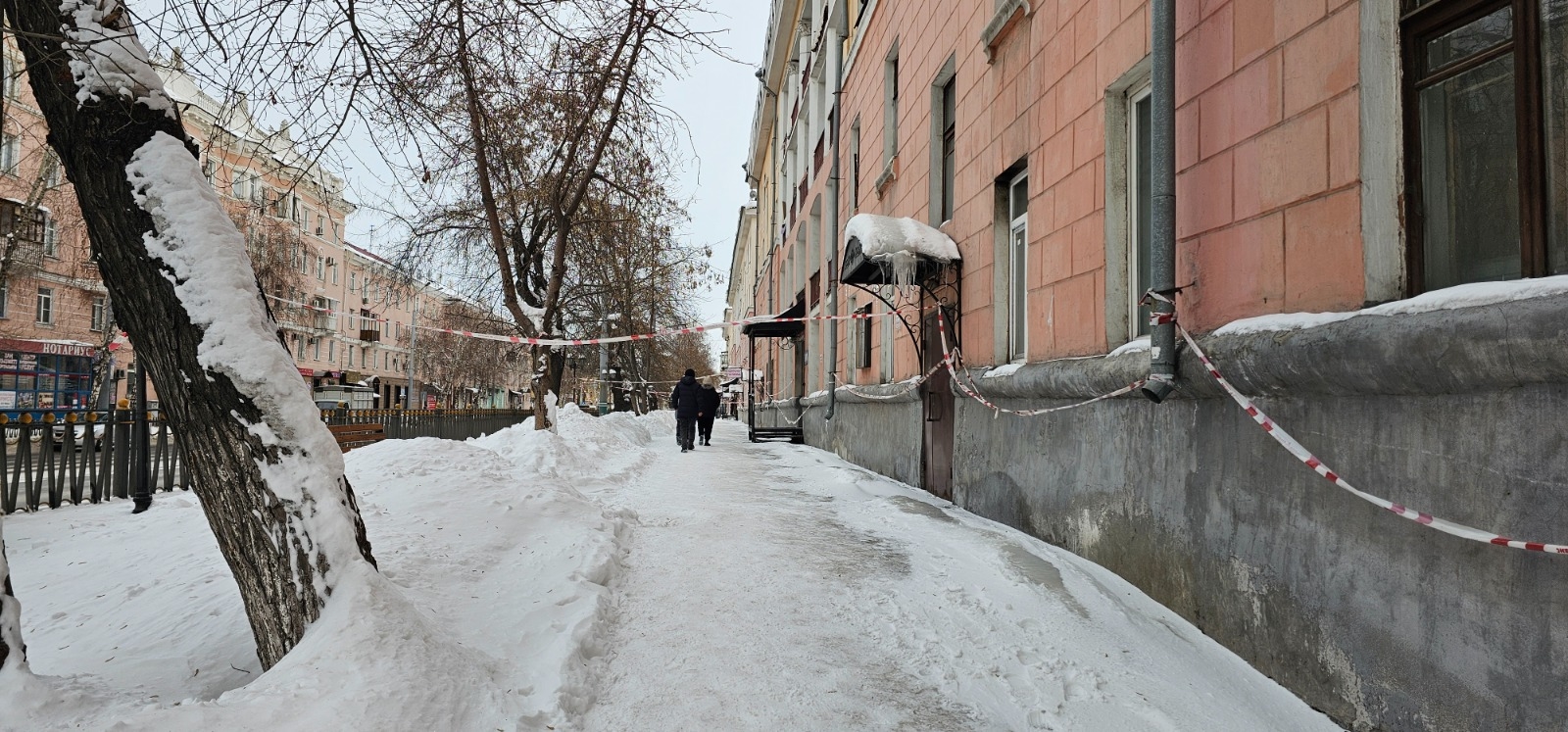В Усть-Каменогорске сигнальными лентами перекрыли тротуар в «старом» городе